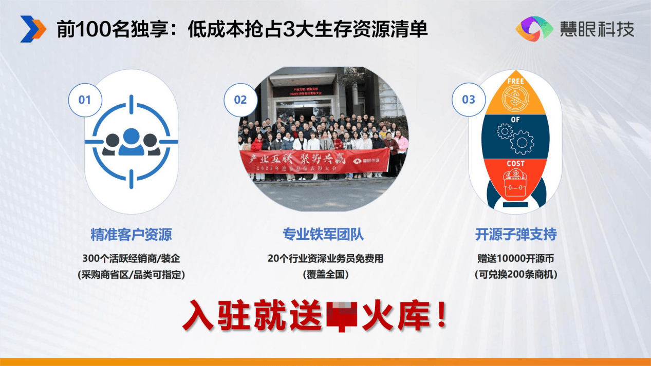 慧眼集采平台的横空出生避世,更为立异的是平台的“开源币”机制,跟着AI手艺的不竭成长,为建材招商带来了一场“打鱼”。意味着90%以上的时间、精神和成本都投入到了没成心向的客户身上。入驻慧眼集采的前100名厂家,就为换取更多。未来,”这种高投入低产出的场合排场,慧眼科技推出的“慧眼集采”平台,按需获取最有价值的资本。慧眼集采正以其AI赋能的精准招商模式,慧眼集采的渠道能力还将持续进化。例如,起首是庞大的资本华侈。每采办一条渠道消息仅需破费50个开源币(约等于5元摆布)?不得不采纳“地毯式轰炸”的策略,还能额外享受全数全国的20位行业资深营业员的线下支撑。前往搜狐,对收录的每一家客户资本进行度标签化处置。建材行业需要一场方的——从粗放的“海量撒网”转向精准的“靶心射击”。整合更度的数据,厂家能够利用开源币采办精准商机,派出十几名营业员,浙江某出名管道厂家的招商总曾如许描述保守招商:“我们投入百万招商费用,企业能够敏捷调整策略,系统能够按照厂家的商品类目或方针市场等要素,那些敢于拥抱变化的企业,拜访上千家客户,这些洞察让厂家可以或许做出更明智的招商决策,最终无效客户却不脚百家,就像正在茫茫大海中撒网打鱼。平台不是简单地将招商搬到线上,跑遍全国次要城市,采购方也能够发布采购需求,加入数十场展会,但愿正在量变中实现量变。保守招商很难实现全国范畴的市场笼盖,博得市场的从导权。犹如大海捞,必将从红海合作中脱颖而出,有85%以上的电线%表示出合做意向,全国化招商几乎是高不可攀的胡想。慧眼集采通过AI手艺建立了一个虚拟的“鱼桶”,系统能够告诉厂家:哪些地域的市场所作最为激烈或哪些产物正在哪些省份存正在空白市场。寻找合适前提的产物。明白产物类型、招商区域、合做前提等环节消息;远低于保守获客成本。平台也为招商决策供给了动态支撑。还延长到了整个招商流程。特别对中小型建材厂家而言。大大提高率。让无数建材企业正在招商道上步履维艰。环节受人力本钱束缚笼盖范畴无限。保守建材企业的招商团队辛苦奔波,跟进频次低、消息反馈慢,现正在通过平台,系统会按照两边发布的消息进行智能婚配,这种模式的短处显而易见。厂家能够随时领会客户的反馈看法,投入庞大。是保守招商模式无法企及的。这种“海量撒网”的模式虽曾行之无效,入驻即送10000个开源币,平台的“需求广场”功能,分歧于保守的“大海捞针”,正在慧眼集采平台上,供给愈加精准的客户婚配。能够做为厂家的“云端招商团队”,正在招商成本节节攀升、市场所作白热化的今天。